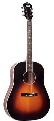 Recording King is a brand with long and good tradition of making high quality acoustic guitars. Their models are predominantly vintage styled and come as fully acoustic. This is the case with RAJ-16, a model from the jubilee series. This one is a slope-shoulder dreadnought guitar with non-cutaway design and fully acoustic construction. Body of this model is made of mahogany and spruce. Mahogany is used for the back and side panels of the body, while the spruce is on the top. Top panel is bound in white and equipped with a single circle white rosette. Bridge section on this model is equipped with a rosewood bridge. Neck is made of mahogany and it sports a standard C contour. 20-fret fingerboard on it`s top is made of rosewood.