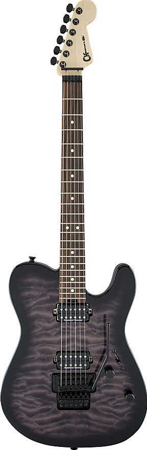 Pro-Mod line is, since the cancellation of the Desolation series, the most affordable member of Charvel Guitars` roster. It offers a vintage/modern take on the Superstrat and Super Tele concepts. Two main branches exist - Style 1 (Strat) and Style 2 (Tele), with a small contingent of DK24 models (24-fret Superstrat models). Pro-Mod San Dimas Style 2 HH FR QM is a true shred beast, coming in with a solid Tele body (San Dimas models don`t have pickguards), dual Seymour Duncan humbuckers (JB/`59 with coil-splitting push/pull switch mounted on the volume pot), a recessed Floyd Rose bridge (FRT-O2000), and quilt maple top over a solid alder body. Transparent Black Burst is the only available option, coming in at $1,310.33 (MSRP).