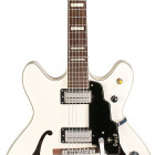 Starfire V is one of five currently active six-string Starfire models (II, III, IV, and VI are also in production). It offers a semi-hollow body, set-neck construction, Guild/Grover hardware, and Guild electronics. White, Cherry Red, Black, and Emerald options make up the color palette. Main construction features include a laminated mahogany body (arched back, sides, arched top), mahogany/maple neck (3-piece neck, U profile), and 22-fret Indian rosewood fingerboard.