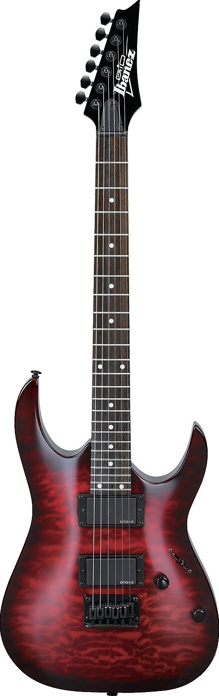 grga42QA is a model from the GRGA series, which is only a sub-series of a larger GIO segment in Ibanez catalog. GIO department is primarily addressing the beginner population of guitar players and guitarists who are struggling with the budget. GRGA offers budget variants of RGA models and GRGA43QA is one of it`s top models. It`s solid, double-cut body is made of basswood base with quilted maple top cover. Transparent Black Burst and Transparent Red Burst are color options assigned to this model and both come with gloss finish. Bridge is a Tight End with string-through-body construction. Pair of EMG H series humbuckers is installed in the front. Bolt-on maple neck is equipped with a GRGA contour and topped with a 24-fret rosewood fingerboard.