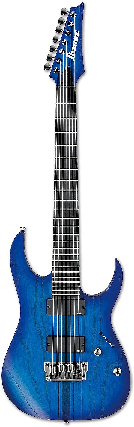 Iron Label is a relatively recent addition to the Ibanez catalog and has already grown very popular among the metalheads around the world. It`s based around the spiced up RG and S series models. Iron Label brings more bite and is made for the hell-raising riffs and brain-melting solos. RGIT27FE is the youngest soldier in the Iron Label army and, most certainly, one of the fiercest. It comes with a solid and flat double-cut body made of ash wings and maple/walnut neck which runs through the entire length of the body. Thus far, there`s only one color scheme available for this gorgeous seven-stringer, it is Sapphire Blue Flat with satin finish and Cosmo Black hardware. Gibraltar II bridge on the top has hardtail construction and seven saddles to accommodate all seven strings of RGIT27FE. In it`s front, Ibanez installs a pair of EMG`s 707 active humbuckers with master volume knob, kill switch and a three-position blade switch. Maple/walnut neck is made of seven laminates and is equipped with the super fast Wizard Nitro contour in the back. Ebony fingerboard on it`s top has 24 jumbo-sized frets with side dot inlays. Gotoh tuners wrap the specs list.