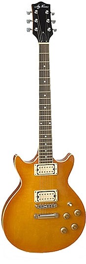 JT-200 series is dedicated to all the fans of Les Paul in both the single and double-cut variant. Most of the models are made in single-cut variant and JT-200PRO is a double-cut guitar. It comes with a solid, carved-top body made of mahogany base and maple top. Top is traditionally bound in creme binding. There is no pickguard on the top of this gorgeous double-cut six stringer. Jay Turser installs the classic bridge unit onto this model. It consists of the tune-o-matic bridge and the stoptail bar in it`s back. In the front, there are two humbucking pickups with creme-colored covers. Standard LP controls unit is featured with them. Set in mahogany neck is topped with a 22-fret fingerboard made of creme-bound rosewood.