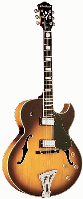 J3 is the basic model from the Jazz series in Washburn catalog. This series offers a range of jazz guitars, fully hollow electric guitars. The range of styles and genres these six-stringers can handle ranges from jazz and blues to fusion, latin and some early rock and roll. Harder rock styles are not what suits these guitars. J3 comes with a fully hollow single-cut body made of maple. The top is carved with a pair of bound "f" holes. Back and top panels are also bound in creme binding. hardware on this model is plated in chrome. Rosewood bridge is backed up by a W-shaped tailpiece. Two active humbuckers are installed in the front of the bridge section. Set in maple neck is topped with a 20-fret rosewood fingerboard.